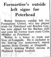 Middler’s deal with Formartine included a match the following season between Peterhead at Formartine which was played at United’s old ground ‘Hotel Park’ in Udny. The result being a comfortable 5-1 win for The Blue Toon. Both Middler and Simpson played in this match.